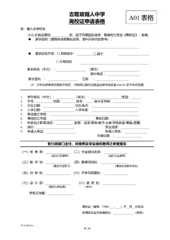 (五)训 导 处:________________ (六)升学与拓展处: _______________