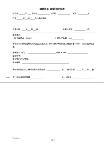学校将会以银行过账的方式退还上述款项,所以离校学生必须正确填写下列资料,否则将影响退