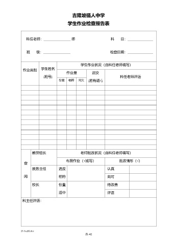 学生作业检查报告表