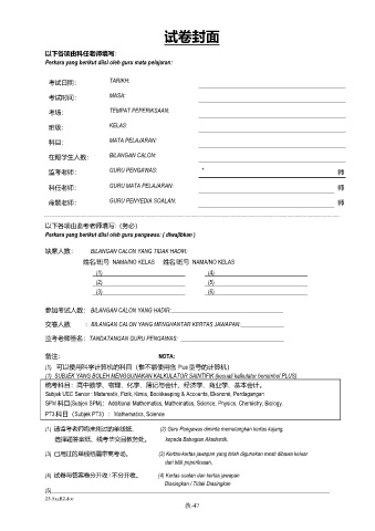 (1) 请监考老师将未用过的单线纸、 (2) Guru Pengawas diminta memulangkan kertas kajang,