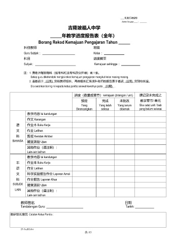 Borang Rekod Kemajuan Pengajaran Tahun ________