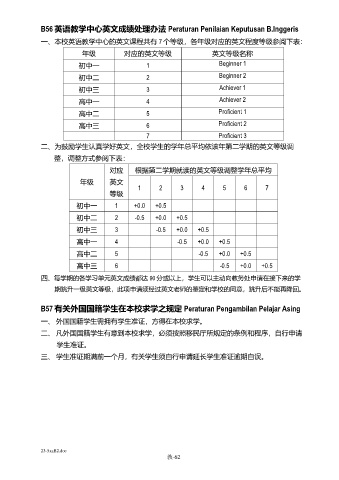 B56 英语教学中心英文成绩处理办法 Peraturan Penilaian Keputusan B.Inggeris