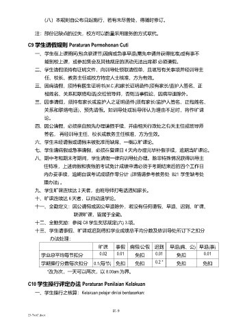 C9 学生请假规则 Peraturan Permohonan Cuti
