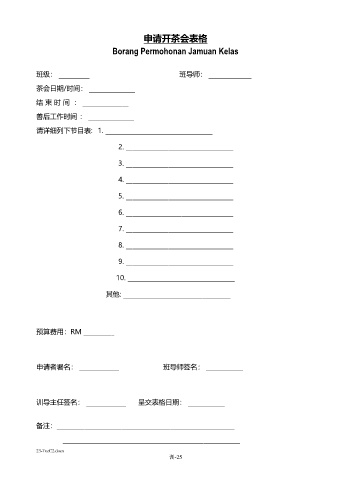 Borang Permohonan Jamuan Kelas