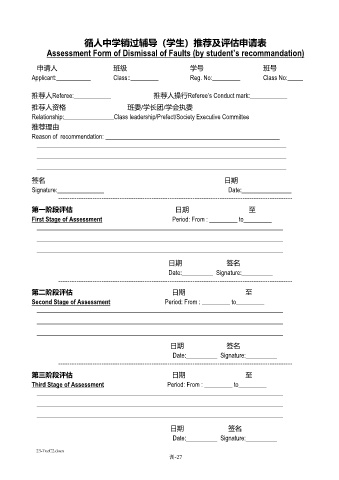 推荐人Referee:____________ 推荐人操行Referee’s Conduct mark:____________