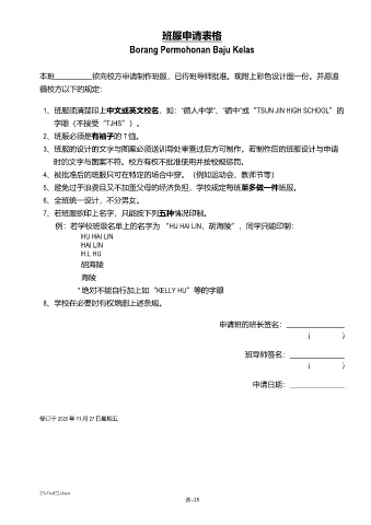 1、班服须清楚印上中文或英文校名,如:“循人中学”、“循中”或“TSUN JIN HIGH SCHOOL”的