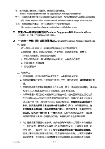 D6 “一教室一电脑”器材管理及使用办法Peraturan Pengurusan Komputer Dalam Kelas