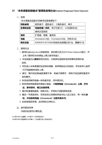 D7 “未来课室实验据点”管理及使用办法Peraturan Pengurusan Future Classroom