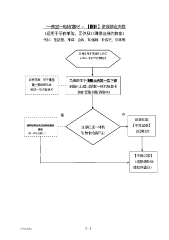 若有需要,可于使用 负责同学于使用当天第一次下课