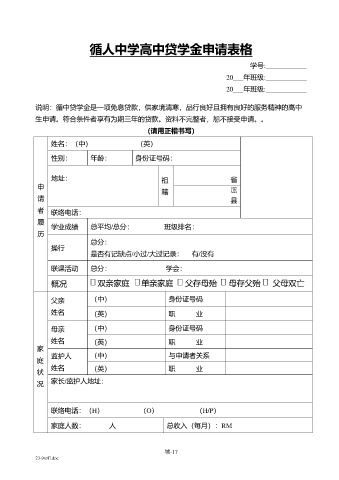 说明:循中贷学金是一项免息贷款,供家境清寒,品行良好且拥有良好的服务精神的高中