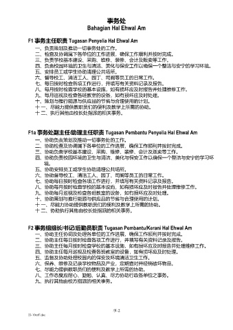 F1a 事务处副主任/助理主任职责 Tugasan Pembantu Penyelia Hal Ehwal Am