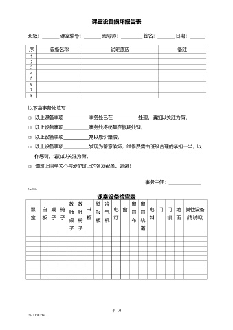 课室设备检查表