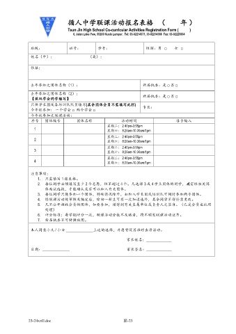 Tsun Jin High School Co-curricular Activities Registration Form ( )