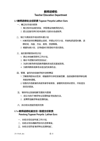 L1 教师进修处主任职责 Tugasan Penyelia Latihan Guru