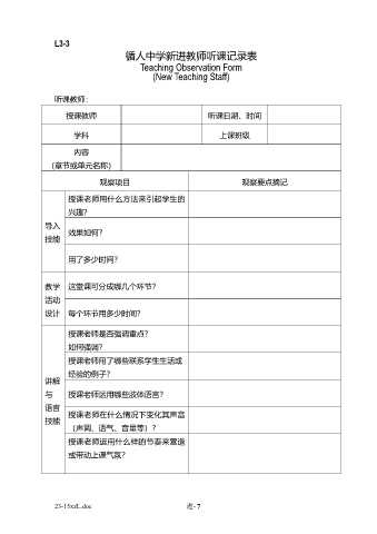 循人中学新进教师听课记录表