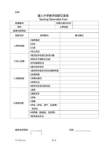Teaching Observation Form