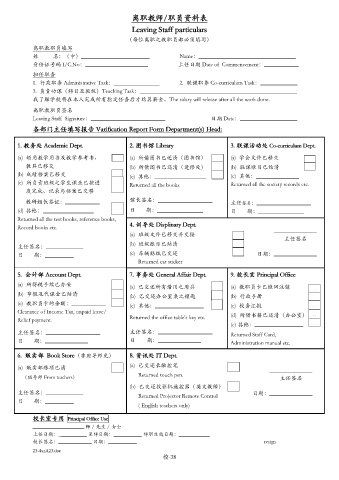 (b) 事假及代课金已结清 (b) 已交还办公室桌之锁匙 (b) 行政手册