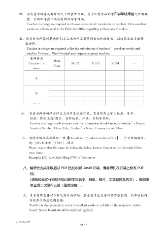 Teacher in charge are required to list the submission of students’ excellent works and
