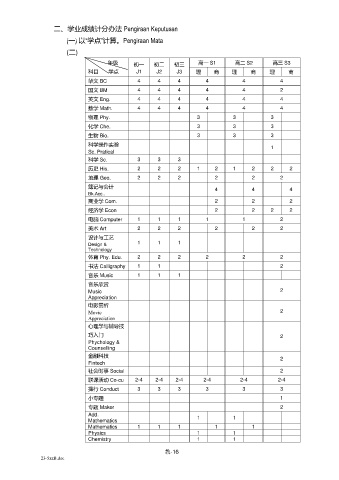 二、学业成绩计分办法 Pengiraan Keputusan
