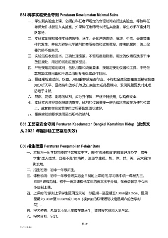 B35 工艺室安全守则 Peraturan Keselamatan Bengkel Kemahiran Hidup(此条文