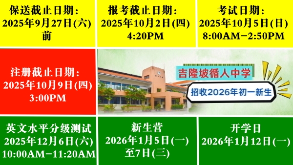Posted by it on Monday, 29 September 2025循中招收2026年初中一新生报名10月2日下午4时截止,应考资讯提醒发布