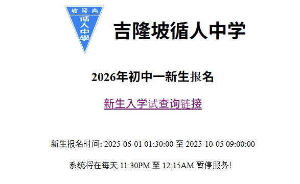 » 2026年初中一新生入学考查询(2025年10月6日早上九时开放查询与注册)